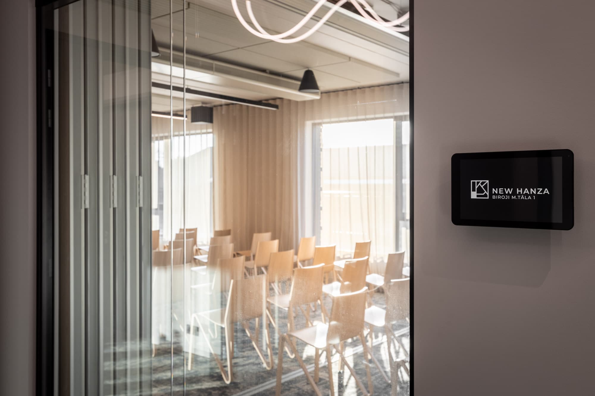 For any tenant making the decision to change their office space, there should be an opportunity to enjoy the practical benefits of a modern and multifunctional office. It's not always feasible or financially justifiable to construct such offices in small office spaces. Therefore, when creating New Hanza offices, we made the decision to offer tenants the opportunity to expand the boundaries of their leased office by creating a 500 square meter fully-equipped coworking space with a 240 square meter outdoor terrace, which will be furnished during the warm season. These spaces allow for conducting meetings, working individually, socializing, having meals, and relaxing in a quiet room. The availability of such spaces for New Hanza office tenants allows for a more efficient planning of their office space without overpaying for areas that would be used relatively infrequently on a daily basis.